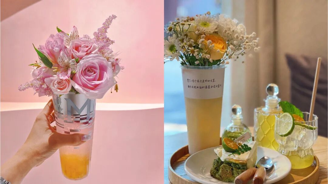 一种由鲜花杯和奶茶杯“嵌套”在一起的“鲜花奶茶”,客单价也在42元左右,最高日销1200+杯。