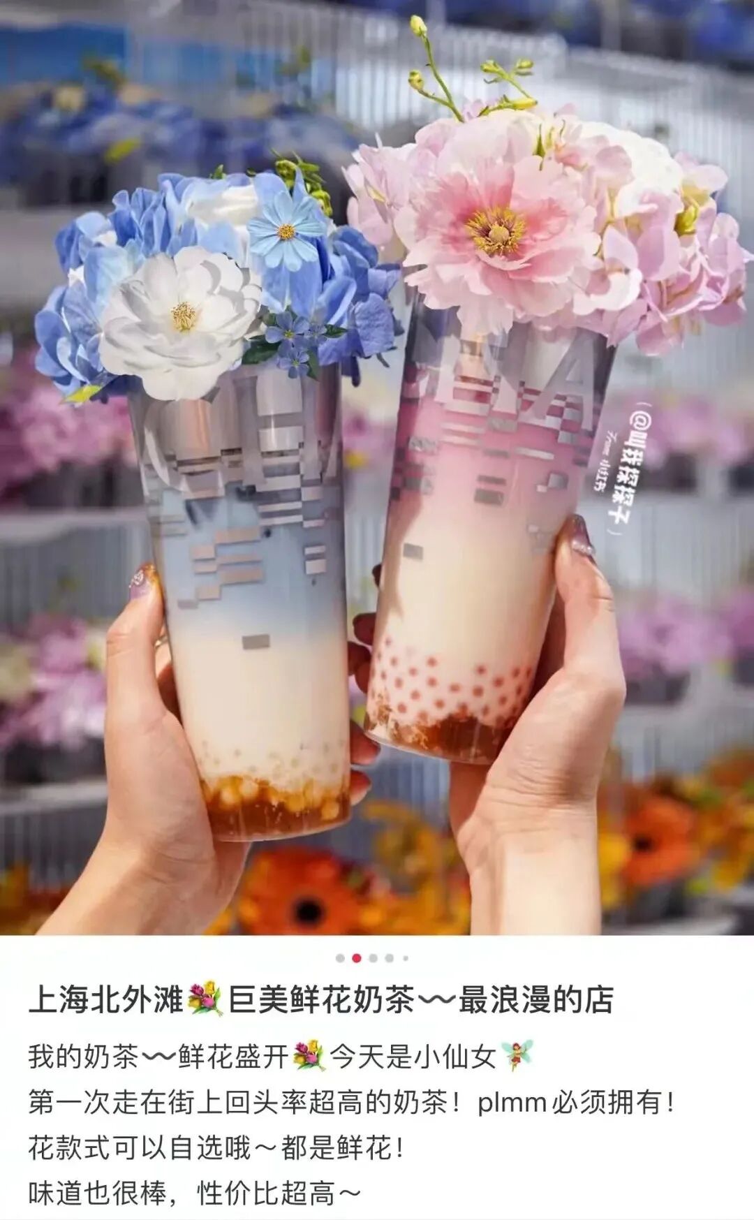 一种是以鲜花冷泡萃取的“鲜花茶”,客单价多在42元,最高日销1000+杯+;