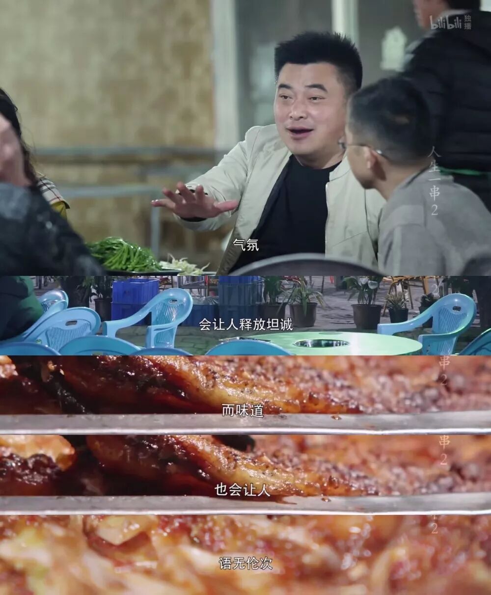 而旁白文案,将普普通通的肉和排骨,写出“有时候在峡谷行走”、“也有时候会穿越不知名的隧道”的浪漫诗意,将稀疏平常的柴米油盐比喻成“天上星辰”,不愧是百万文案。《人生一串》的文案一直被人称道,每次播出B站满屏的弹幕直呼“文案满分”、“文案鬼才”,“百万文案”“都是金句”,到底有多绝,我们一起来回顾一下前两季的文案。