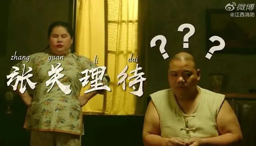 群鸟纷飞,黑猫出没,少年大呼“着火啦”,场面异常慌乱。此时,楼房里的壮汉不顾劝阻,心急逃生,反被浓烟呛倒在地。面对壮汉的一脸疑惑,胖妞只回应了四个字:“张、关、理、待”。江西消防再次用戏精的方式打开公益宣传片,通过电影般的画面质感、加以演员的表演张力,营造出一个充满戏剧冲突的紧张氛围,浸润观众情绪,牵引人心。随着剧情推动发展,一步步引出宣传知识重点。鲜明紧凑的节奏,自然流畅的承接,大大提高了宣传片的观赏性。江西消防用言简意赅的标语提炼记忆要领,并以故事演绎正确的火灾逃生动作示范,既有趣味性,又具科普性。得以在观看的过程中形成反复洗脑作用,有效占领观众的心智,成功传达宣传片的诉求目的。我们常说,“创意就是旧元素的新组合”。这个说法在江西消防的宣传片里很好地体现出来。江西消防选自大众耳熟能详的成语张冠李戴,利用谐音梗提炼出简明扼要的知识点——张关理待:一方面,朗朗上口,便于大众记忆;另一方面,给旧元素融合消防知识,更具创意表现力。这样一来,能大幅度降低大众的信息接受成本,缩短了沟通的路径,实现精准触达,做到了“在最短的时间内给用户最有价值的信息”,向大众传递了正确的消防知识。片中还有仿照周星驰电影镜头,各种方言配台词,增添观看亮点。江西消防通过大众喜闻乐见、妙趣横生的创意玩法,极大激发了受众的观看兴趣,进而引领受众自发性分享传播,实力出圈。在这个碎片化时代,注意力十分稀缺。如何让作品在云云信息海里脱颖而出?这对于带有公益性质的广告宣传片来说,无疑是难上加难。在大众的固有认知里,公益宣传片普遍基调严肃,形式单一,充满填鸭式及教条式味道。