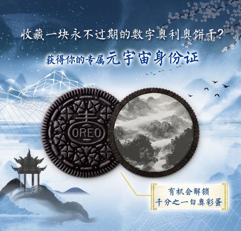 就连奥利奥饼干在联合周杰伦打造国潮营销的过程中,都不忘蹭一波“元宇宙”的热度,推出了所谓的奥利奥+区块链NFO数字艺术品盲盒。
