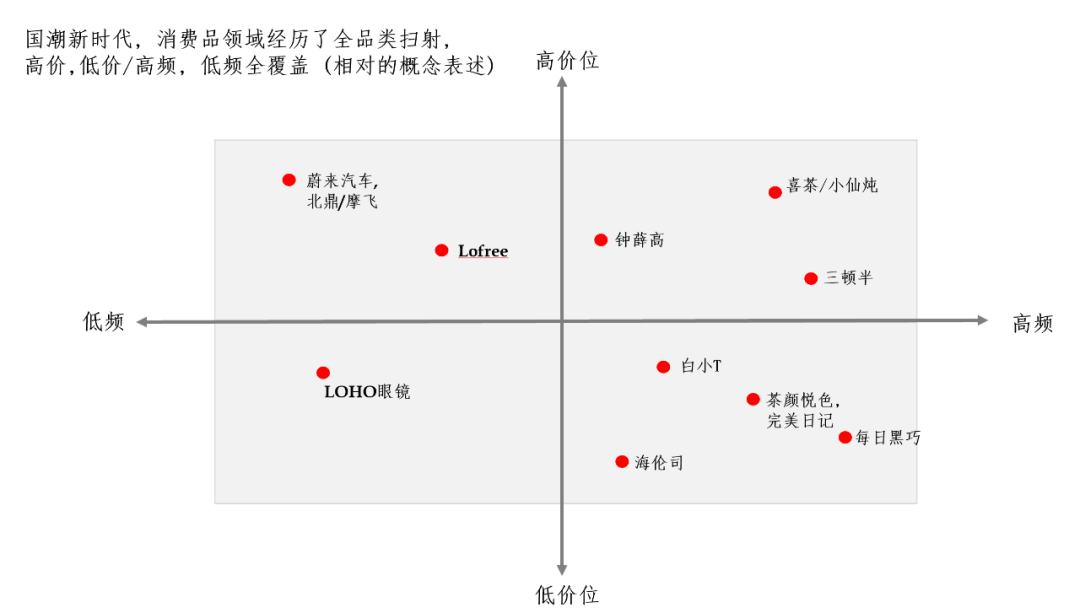 衣的方面有蕉内、内外、MAIA、十三余等;食的方面有酪艺、M Stand咖啡、元气森林、卫龙辣条、依然、虎邦辣酱、龙米、冰青等;用的方面有北鼎、LOHO眼镜、纯棉时代、Lofree(口红键盘)等;车的方面有蔚小理……真的可以用汹涌而至来形容。