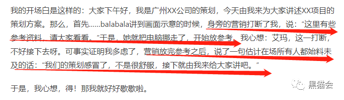 “什么时候留给甲方思考”、“什么时候让甲方放松”…这些节奏感都是设计好的。