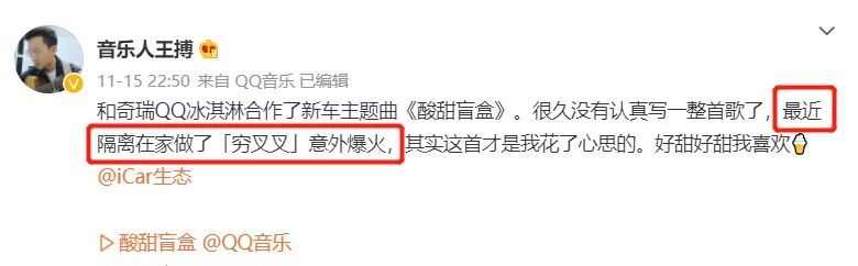 点开之前,真没想到这么好笑;就像原UP主都不曾料到:但离奇就离奇在,你看它是冷饭,偏就给人炒火了,还一把火“烧”着了好几个平台:小半月来,“室友抖音全是这个BGM”的评论,占了B站留言一半;开头“你叉叉”,瞬间梦回《浪漫天降》,空姐晓彤中二热舞,舞上鬼畜素材榜;接梗“穷哈”,则是2019MAMA舞台上,最出圈的“英文梗”:再到这句官官忘不掉的“哈利波特骑着扫帚飞”,则是18年《跨界歌王》舞台上,最具反差表演第一名:谁也没想到,忧郁深情“周崇光”,会在浪漫《童话镇》里插入一段“怒音rap”,声嘶力竭地控诉“我的扫帚只能清理垃圾堆”。夹杂着昊然弟弟歌颂“日出”“日落”的青涩唱功、马嘉祺陪伴无数人成长的“什么是快乐星球”,以及朱丹至今仍在未走出的“sorry”梗......虽然都是“古早梗”,但这样史无前例的集结体,还是给神曲埋下了话题营销的基因。果不其然,被洗脑的网友们首先开始回溯名场面的出处。当那些一度引发全网哈哈哈的明星热梗再度翻红,朗朗上口的新编旋律、鬼畜魔性的视频表演,又引发了全网模仿热潮:除了原版视频的趣味模仿,衍生而来的#穷叉叉合唱挑战、#穷叉叉舞蹈大赛,也从多种角度带高了神曲热度:而再排除内容本身是梗、旋律洗脑易传播等因素,明星集结的特殊形式,也给了话题进一步发展的空间。虽然在官官看来,学冬老师才是当之无愧的“vocal”担当,但看过网友严谨的时长分析,我不得不对这个分配报以无比赞同的掌声:众神缔造者王博,索性把心一横,接连推出了“穷叉叉2.0”、“穷叉叉3.0”,到现在已更新至“穷叉叉4.0”,穷叉叉宇宙正式形成。虽然求生欲满满地表示,“希望各位团员好(不)好(要)爱(告)我”,但没想到吧——