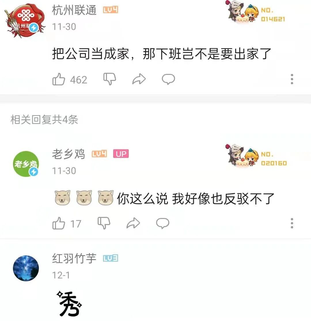 BB鸡号称“没有人比我更懂我司企业文化”,而她理解的老乡鸡企业精神第一条就是“把公司当自己家”。