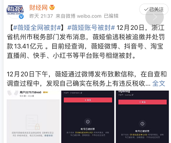 薇娅因逃税被通报,其震撼力不逊于王力宏「优质偶像」形象的全面坍塌。目前,微博、淘宝、抖音上已经搜不到薇娅的账号,这意味着她已经被全网封杀。