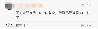 有网友将此事和王力宏离婚丑闻进行类比,调侃当王力宏还有为1.5亿争论时,薇娅已经被罚13个亿了;有人看热闹不嫌事大,笑称够赔七个王力宏了。