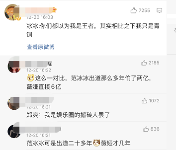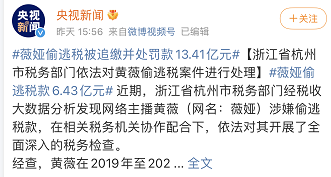 薇娅和李佳琦齐名,是淘宝两大头牌主播,两人的卖货业绩占据淘宝的大半壁江山。不仅如此,她还卖过火箭,几千万一单的生意,直接被秒。还搞跨国营销,助力其他国家发展经济,网红主播做到这样的成就,可以说是史无前例了。可以说,她的知名度和影响力,丝毫不亚于当红流量明星,因此消息一出,网友炸锅了!大都基于罚款13.41亿的财富联想,弥漫着羡慕嫉妒恨的情绪,以及眼见他人高楼坍塌的快感。由于薇娅偷税数额远远高于范冰冰,有网友称必须封杀薇娅,不然就支持范冰冰原地复出。还有人感叹,范冰冰红了十几年还不如当红主播,怪不得一堆明星抢着带货。更有人戏称,郑爽之前被爆208万日薪只是搬砖,还有网友很有才的弄出一个公式,即1薇约等于635爽,可真是绝绝子了。