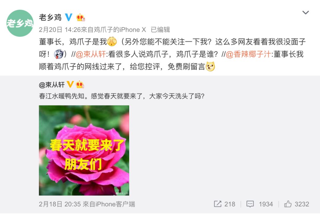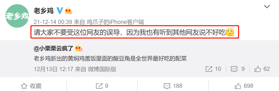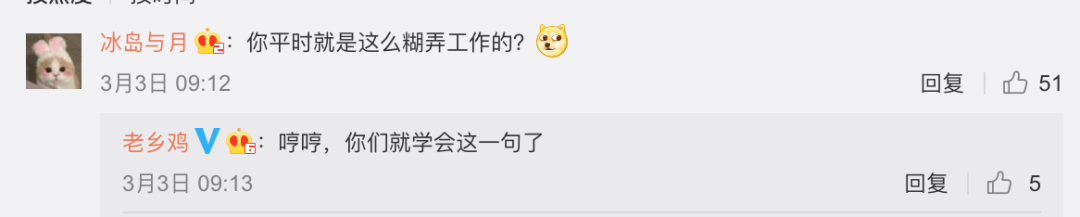 果然,当有人跑到董事长账号下面找鸡爪子打开收藏夹时,就被小红鸡怼了:让人脑补:是要上演职场剧情了?新的流量密码又开始孵化了?当初老乡鸡凭借一句“咯咯哒”被调侃为全网最轻松运营: