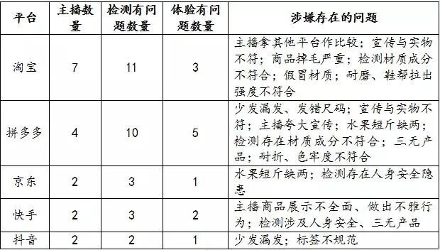 在体察具体操作上,共计购买商品80个批次,包括服装、鞋类、食品生鲜、玩具、电子商品等,并委托第三方权威机构就商品质量、标识标签、理化指标等按国家标准进行检测。除了李佳琦的商品标签问题外,消保委还点名了Timor小小疯、云云直播间等5位主播存在夸大宣传,用绝对广告语、与其他直播间价格对比等问题。此外,指出知了严选、融威七号“小轩哥”等主播商品质量不符合标准问题。据了解,在淘宝平台的Timor小小疯直播间中带货时频繁提及其他平台,并宣称自己价格低。