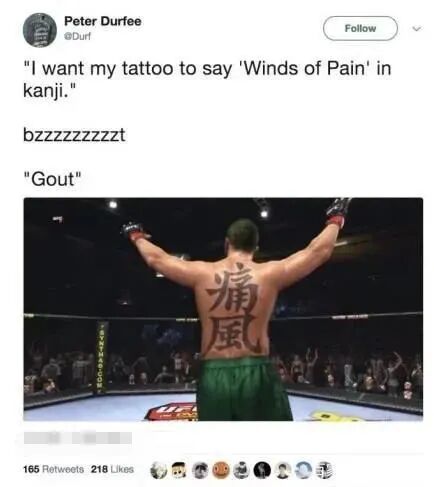 讲真,第一眼看这图,我还以为上边的“可可 香奈儿”奏是个水印:卖15块钱包包的义务小商品老板,甚至不会答应做此款的盗版。不是我说,把香奶奶散发着仙气的名字,直愣愣地打在包上,这设计谁想的?扑面而来,就是一股外国友人盲目追求中国风,硬往身上纹中文的既视感,be like:“Winds of Pain”(痛苦风暴)=“痛风”;