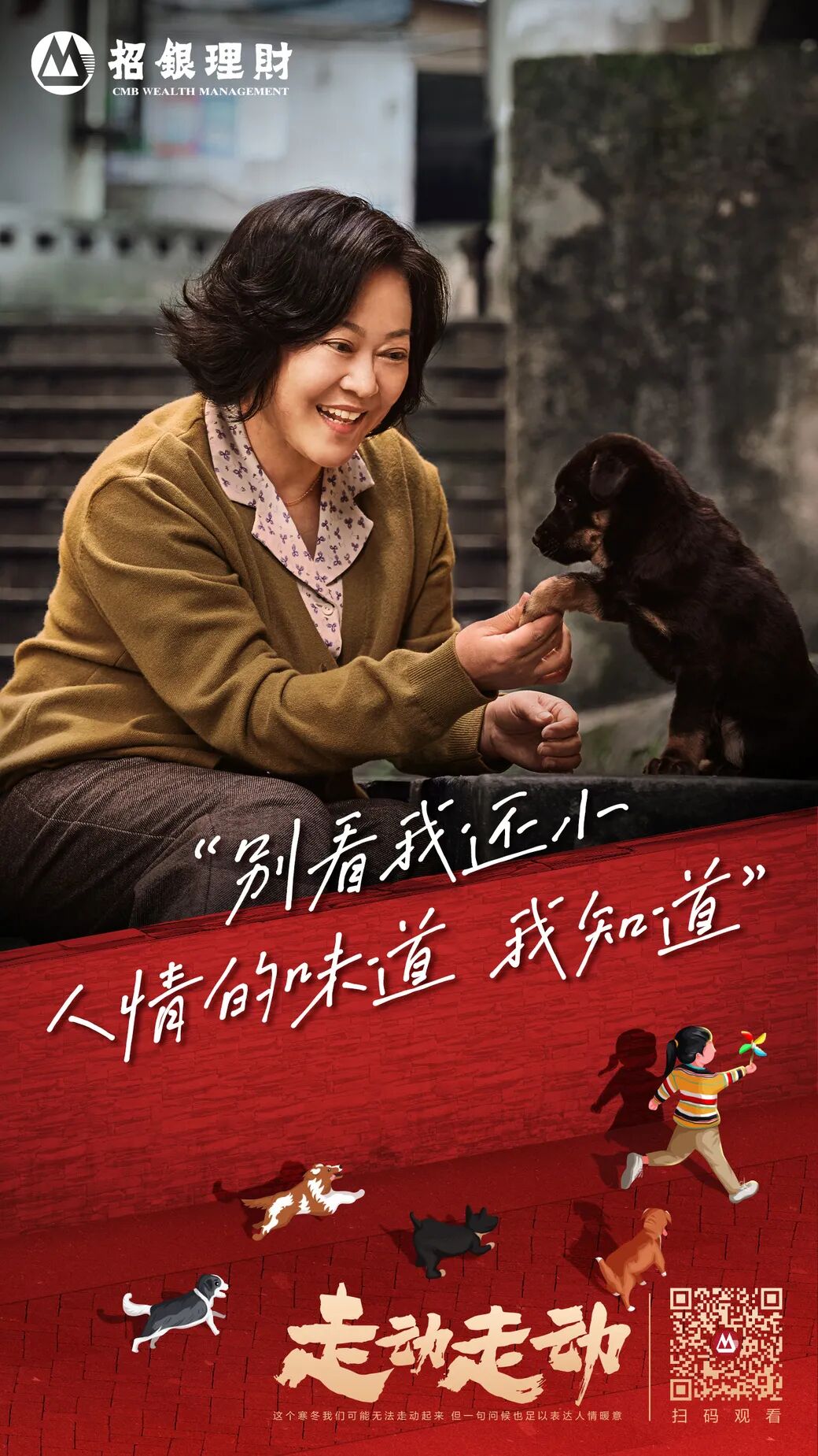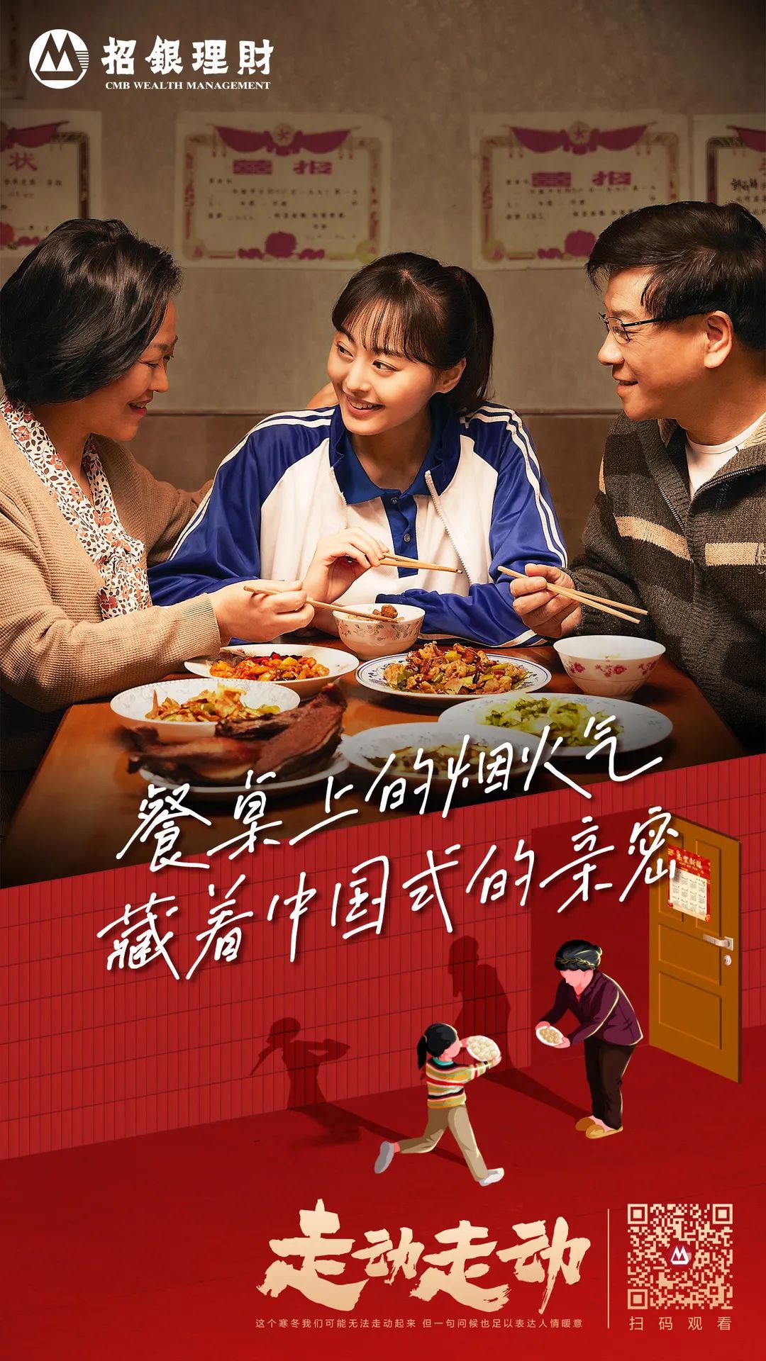 小时候觉得,过年就是放鞭炮、穿新衣、吃些平时吃不到的好东西,仿佛一年之中所有的热闹欢喜都集中在春节。长大后发现,过年愈发不似从前有趣,除了放假好像没有别的事值得期待了。尤其对年轻人来说,过年还有一大痛点——被家人拖着四处串门“强行社交”。尽管知道这是礼节,但对长期生活在大城市、邻里之间几乎不认识、习惯讲究边界感的“社恐”来说,尴尬的春节拜年场景真是“交际修罗场”。于是,“过年没意思”成为越来越多人的真实感受和普遍痛点,说白了就是:年味变淡了。眼看虎年春节将近,该如何高效解决“年味变淡”的痛点?招银理财春节短片《走动走动》给出了一种解题思路,也就是老一辈经常念叨的那句话:多走动走动就好了。平心而论,这支短片从体量到质感堪比微电影,在注意力稀缺的当下,却能吸引你从头到尾完整看完。究其原因,是它诚诚恳恳做到了三点:真实、真心、真诚。短片讲述了一个我们每个人看到都会觉得亲切且感同身受的故事。又或者,你可能真的就有这样一位热衷走动的“社牛”母亲——左邻右舍没有她不熟悉的,但凡活物没有她搭不上话的,街里街坊都知道你家有这么一位爱张罗的热心肠妈妈。