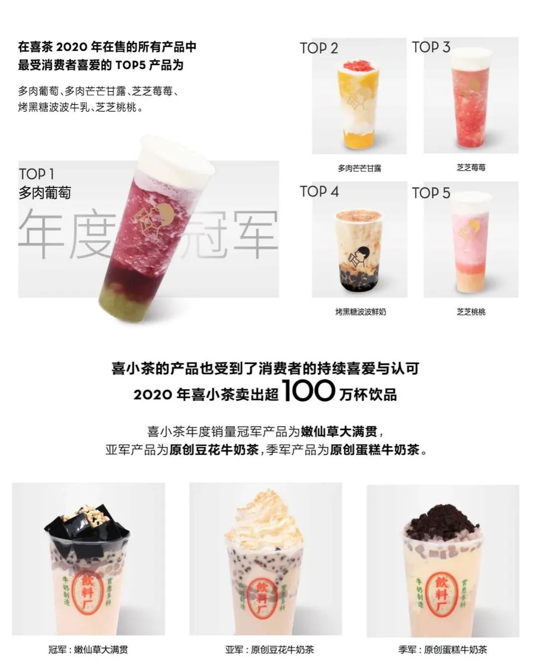 《2019新式茶饮消费报告》中就已经提到“一线城市的茶饮市场趋向饱和,头部茶饮品牌向下沉市场进攻势不可挡。”高端品牌早就嗅到行业风向。2020年4月,喜茶推出副牌喜小茶,外界将之视为喜茶试探下沉市场的动作。喜小茶推出之际,喜茶门店数量600多家,集中在消费能力更强的一线、新一线城市,彼时喜茶的规模效应、品牌势能等客观条件注定了喜小茶诞生的意义:作为喜茶在高客单价市场以外的补充。关于喜茶和喜小茶的区别,官方的介绍是:“在喜茶,我们希望用最高标准做出最好的茶饮;但是在喜小茶,我们致力于提供合适、刚好的茶品,在合格的标准上尽可能实惠。”观察喜茶和喜小茶的产品布局也能发现,与灵感之茶、主张个性的喜茶相比,为了“刚好、合适”,喜小茶的原材料选择稍显平庸。2020年,喜茶发布年度报告,喜茶TOP5产品中,有四款是鲜果茶,葡萄、草莓、蜜桃、芒果等材料的选择、运输、储存、处理等都十分考验成本控制;同时发布的喜小茶前三名:嫩仙草大满贯、原创豆花牛奶茶、原创蛋糕牛奶茶,都是以奶茶打底、辅之不同小料的常规茶饮,这些用料即使符合喜小茶“鲜奶鲜茶”的主张,在原料成本上也明显低于主品牌的鲜果材料。以“茶、奶、甜品”的基础组合为主,茶底普通,奶制品制作简单,水果也很少选取高端复杂的青提、葡萄、车厘子等,如果喜小茶不借助喜茶的高端名气,在中端市场纯厮杀,并没有太多优势可言。主副品牌关联性过强的次生效应也逐渐显现,与奈雪的茶推出的台盖、梨山等子品牌相比,喜小茶依附喜茶的感觉更加明显。这种品牌效应通过让渡喜茶原有的高端形象,为子品牌换取竞争空间,两者不是相辅相成,而是此消彼长的关系。喜茶本身也明白一杯高端茶饮作为社交货币的情绪价值,但屈服是不可避免的。面对原材料上涨、茶饮市场越来越卷的行业现状,无论是茶颜悦色涨价还是喜茶降价,本质上都在谋求产能和利润的动态平衡,喜茶只是在临界点上做出了早该有的动作。只有消费喜茶的人群规模上来之后,喜茶在门店的拓展上,才有可能去更广阔的市场开出更多的门店,换取更大的品牌势能。回过头来看喜茶降价的连锁反应,并非没有猫腻。常销品类里,更多产品是去掉小料,加上了“纯”字,摇身一变成了“新品”,至于真正的新品价格降低,有餐饮业内人士向「新熵」表示:“新品定价本来就有一个尝试调整期,在餐饮上叫调整菜单,丰富价格带。喜茶在同行涨价潮中宣布降价,更像是一场反其道而行的营销。茶颜悦色涨价之后还是落在10—20元的中间区间带,而喜茶部分产品降价也并没有脱离第一梯队,实质都是供给端向需求端做出的妥协,消费者需要真正的产品,而不是价格上的孤芳自赏。”