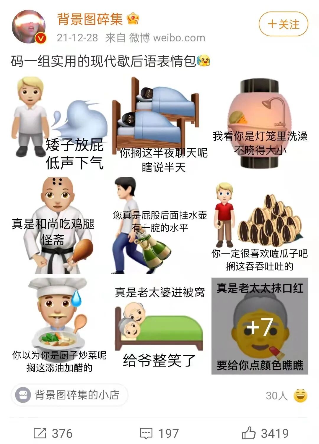 最近,8G冲浪的欧阳发现一种emoji版歇后语表情包又火了,这种表情包骂人不带脏字,充满讽刺意味,非常适合阴阳怪气。