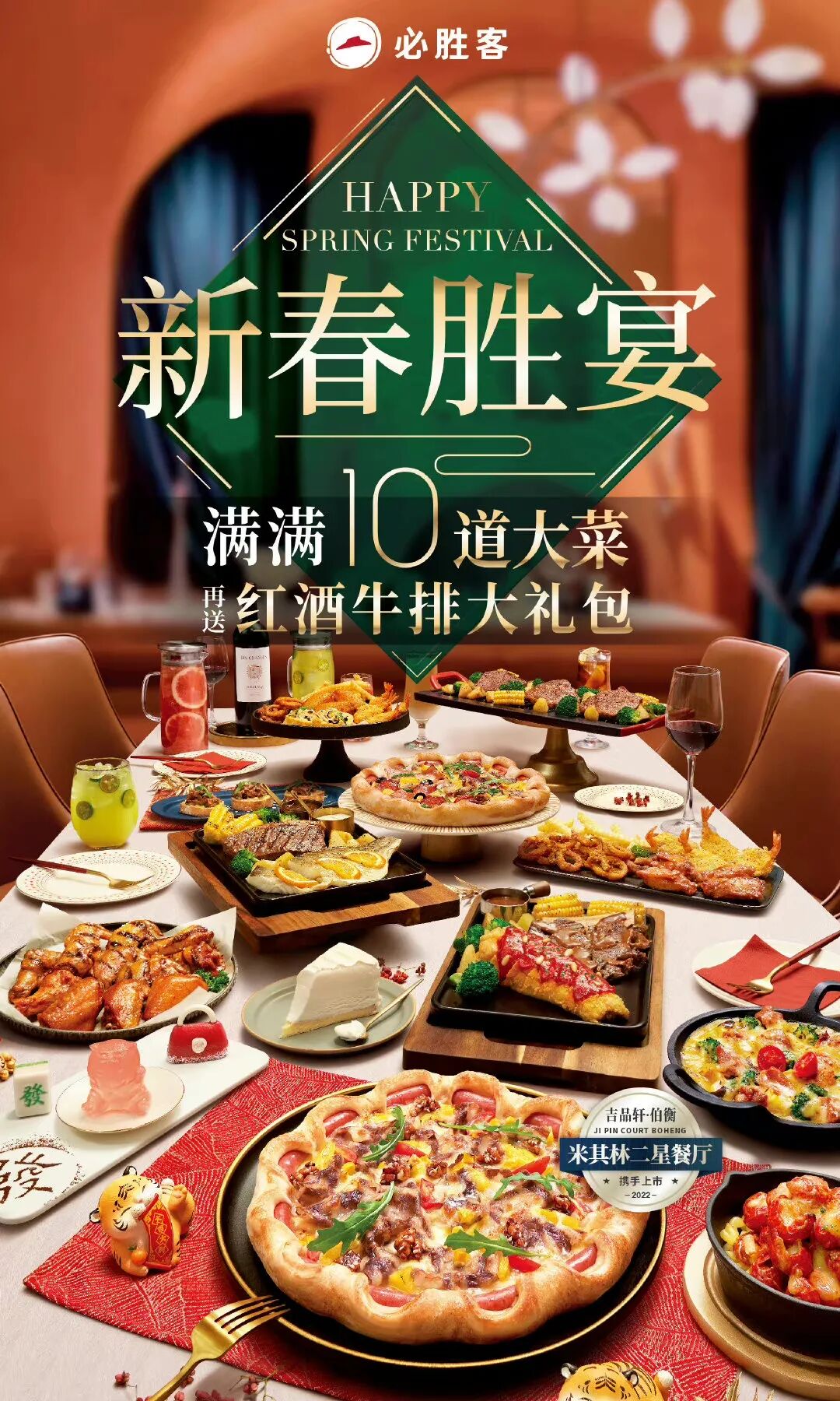对于品牌来讲,营销创意表达最终要落脚到产品层面,从消费层面链接用户,才能更深入人心。而且解决了用户看完即走的痛点,提高了从营到销的效率。必胜客联手开心麻花出炉这部喜剧短片,将人生这张饼和必胜客做饼巧妙相承接,巧妙落到必胜客品牌产品本身,而影片最后的「人生是张什么饼,饼我只吃必胜客」的对联,更是让用户拉回产品层面,产生消费联想。为了更好承接消费场景,必胜客此次还联合开心麻花,携手米其林二星餐厅上线新年季新品,即全新琥珀鲍汁和牛烤肠卷边比萨。中西合璧搭配,采用松鼠海鲈鱼牛肋排拼盘,优选白蕉海鲈鱼,甄选厚切牛肋骨,红酒10小时腌制佐以灵魂酱汁入味。