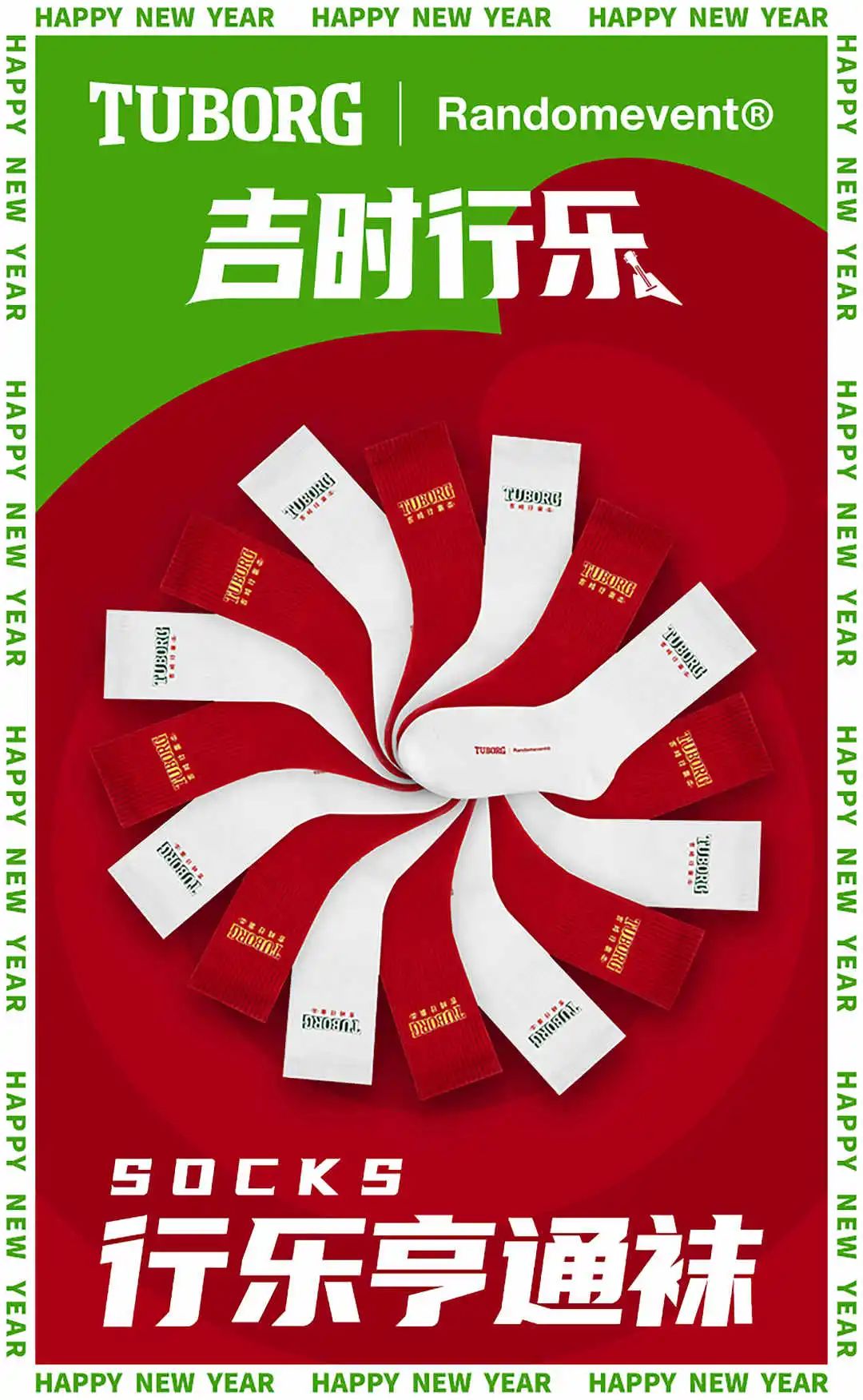 换上新年BGM,年轻人过年还会做什么?当然少不了置办新年装备,吉时穿新衣,拉满新年仪式感。乐堡啤酒联手新锐国潮品牌Randomevent推出新年限定联名款「吉时行乐有一套」,包含万事顺衣、财帽双全、行乐亨通袜、吉星高罩四款单品。带给年轻消费者制霸新年的穿搭灵感,让你的新年吉时行乐有一套!