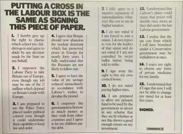 文案一稿过,全国民众都上街T票给了保守D,文案还得到了严格的Saatchi先生的赞许。