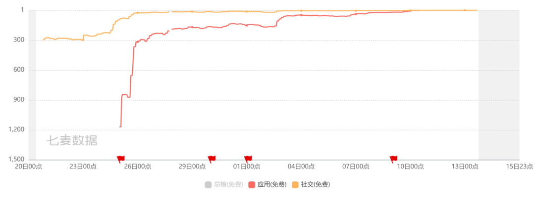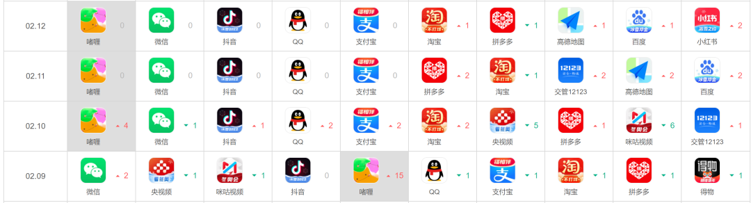 七麦数据的统计显示,啫喱自从2022年1月下旬起,排名就呈现出了相当剧烈的增长态势。仅仅用了半个月左右的时间就位列App Store免费应用榜第一。能常年保持在这个位置的,一般是微信、支付宝、抖音、快手、央视频等全民级App。