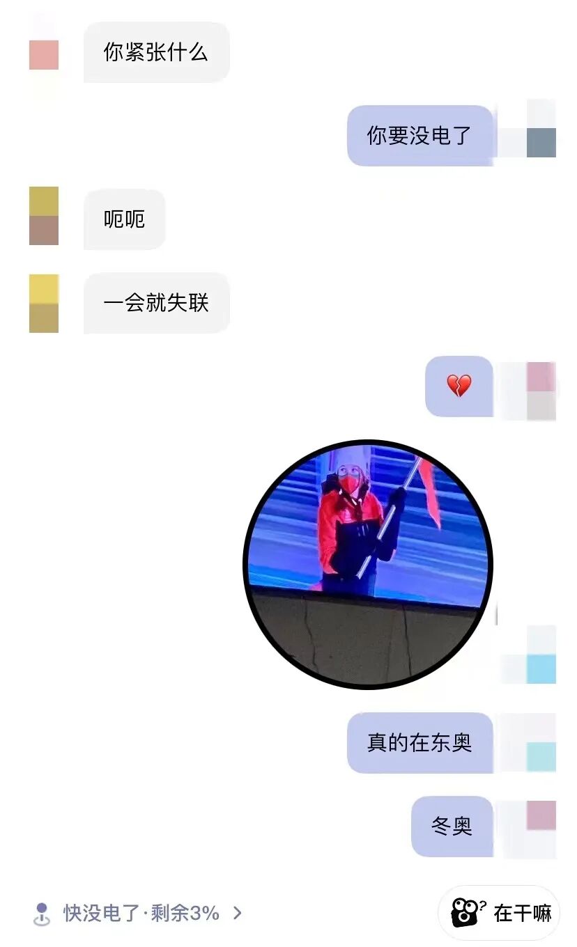 聊天过程中,可以看到对方电量,我记得之前QQ也出过类似的功能。有趣的是,聊天界面中有个“在干嘛”的选项,点击“在干嘛”,就会抛给对方一个相机,如果对方想要回复,就只能用照片的方式回复,当然也可以选择不回复。