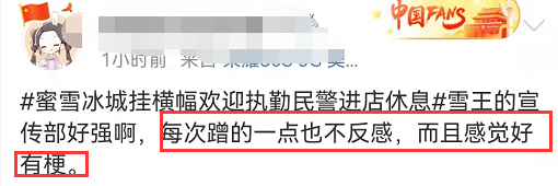 一个店大欺客,一个店小惜客,果然不是一路人,不进一家门。民jing还在去蜜雪冰城的路上,网友已经先夸起来了。关键时刻是真拉横幅明涵,这蜜雪冰城有事儿是真能上,直接带我搞明白了“xx真能处”句式