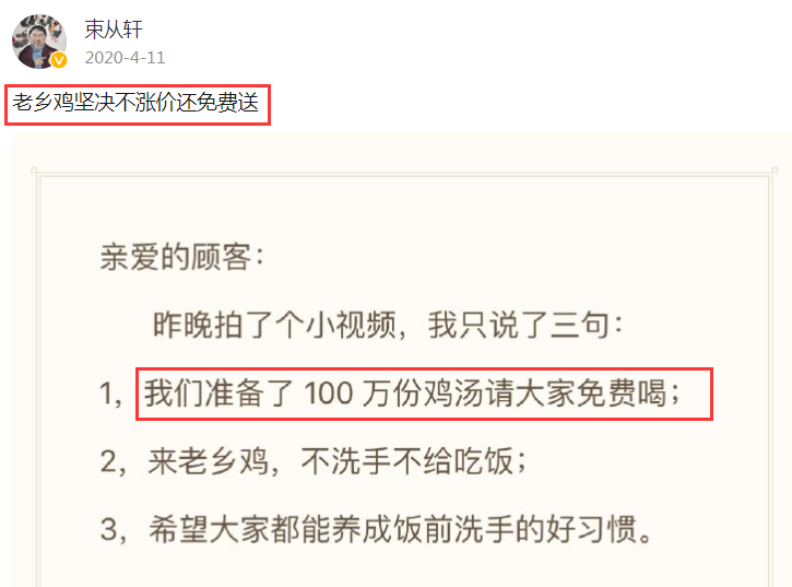 老乡鸡居然承诺不涨价,还“吃亏”送鸡汤,这捆绑友商的广告打得极度舒适,老乡见老乡两眼泪汪汪。
