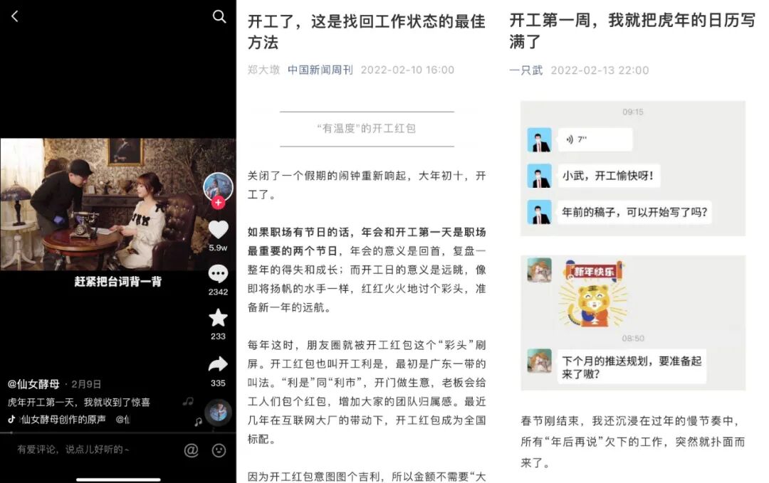 三是线上媒介借势。中信银行信用卡此次传播覆盖了用户常用的媒介渠道,通过腾讯、今日头条进行广泛传播,通过垂类媒介如飞客茶馆等进行精准投放,充分传递活动信息,引起受众关注。四是开工热点借势。这个热点借势得相当巧妙,在国人的观念中,新年开工同样是个重要节点,“开工红包”更是寓意着新年红红火火从头开始。中信银行信用卡抓住这一热点,在抖音与超头部KOL、在微信与重量级大号联合,以好彩头、开工状态等话题为内容,持续传播“虎虎生威”活动信息。
