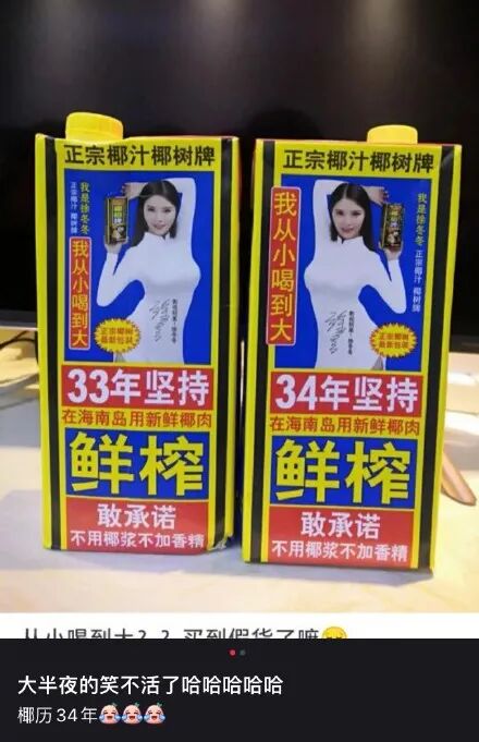 再补充一个冷知识,椰树椰汁是海南建省同年上市,所以椰树包装上的年份也是海南省建省多少年。