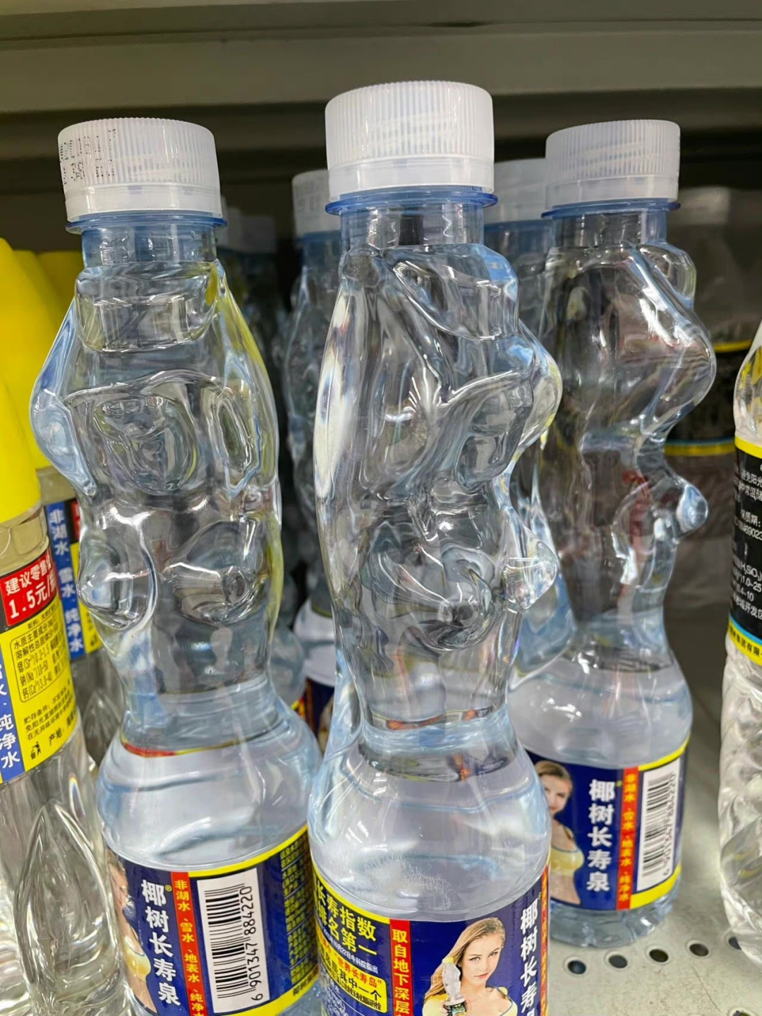 更离谱的是,这个矿泉水之前还出过胸模瓶,很难想象,这个造型的矿泉水出现在新闻联播里是怎样一番景象。。。