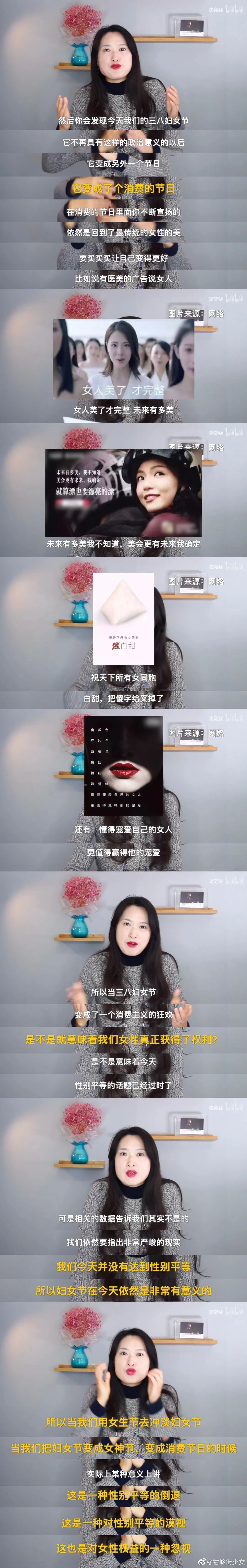 但没有男性的支持或者反对,女性就不能活出自己的精彩吗?显然这样的逻辑经不起推敲。毕竟对于女性的偏见不仅仅来源于男性,问题的根源不在性别,而在于整个社会共识的建立。但品牌却简单粗暴的把它归咎于性别的对立,通过添油加醋,激化性别对立,增加了人们对“平权”、“女性主义”的误解。一些讲得有道理的,我也很支持,可是这些刻意以偏激言论博眼球的,无论是偏哪个性别的,我都不觉得很好。 03
