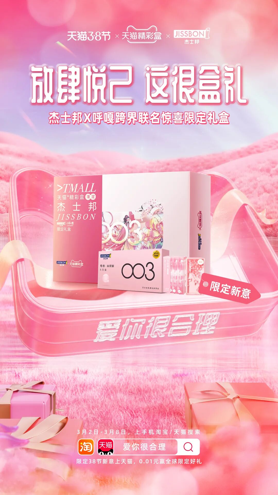 今年三八妇女节,杰士邦联合三位女艺术家,将这份不一样的礼物,送给了每一个不一样的女性个体。每个人生命中都有各种各样重要的女性关系,奶奶、妈妈、小姨、姐姐、老婆、女儿,及自己等,每段不同的社会关系之下其实是人的共情和羁绊,也是仪式感和礼赠的最有力出口。天猫联合商家共创100+女性专题,同时推出38节话题性限定礼盒,选取生活中不同场景,号召38节点仪式送礼,关爱“身边的她”。爱妳,这很“盒”礼,天猫精彩“盒”你在一起,给生命中不可或缺的“她”送一份爱!与呼嘎联名的口香爆爆珠和便携式漱口水藏于礼盒之中,设身处地为消费者考虑了使用场景。对于女性消费者而言,每一次用心准备的约会都很重要,谁都想做到面面俱到。而漱口水的口香爆爆珠的出现,恰好满足了女性消费者的这一需求,不仅完美匹配了约会的场景,更是以小博大,用这种“不起眼”的贴心快速拉近与消费者之间的距离。
