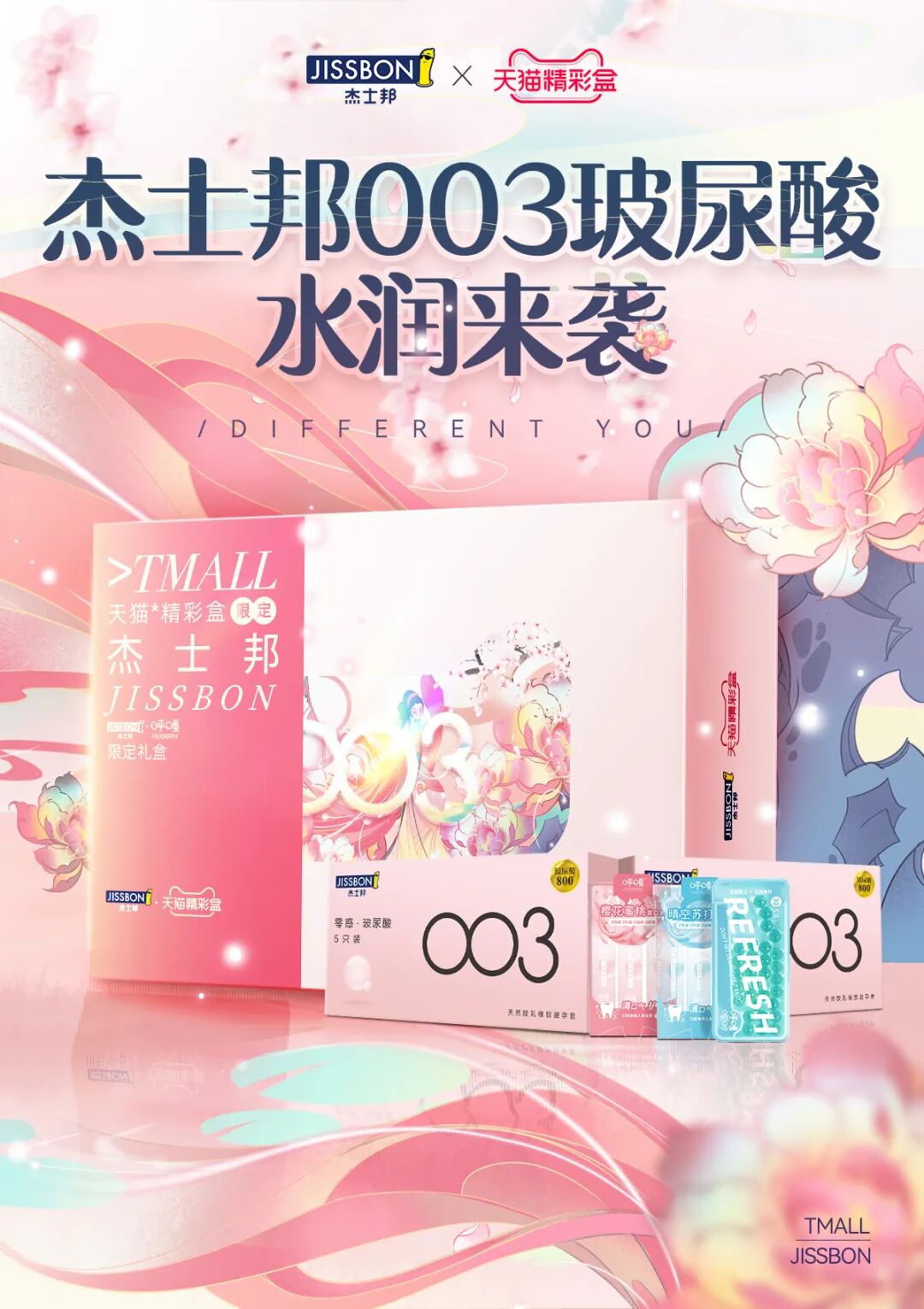 另一方面,杰士邦将售卖的主产品—玻尿酸003放进礼盒之中,极具辨识度的粉色包装粉嫩又足够梦幻,更何况它还是颜值与实力兼具。在更进一步的约会场景,玻尿酸安全套产品不仅为女性提供了基础的安全保障,同时也充分考虑到了女性的体验感,对于女性消费者来说非常受用。