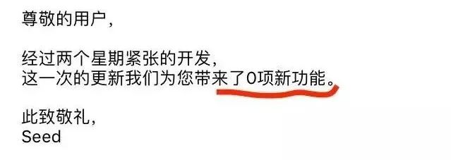 该说不说,见惯了以往千篇一律的严肃风格,再一看这些戏精的更新文案,写得属实有些幽默诙谐了。不过也是,版本更新的文案总是容易被用户忽视,或者习惯性地一键关闭掉。不写得骚气些,又怎能牢牢地抓住用户的眼球呢?像上面这些有趣有梗的文案,无论内容还是表达形式上都更容易脱颖而出引发关注,最终带动用户版本的更新。甚至,还能作为一个宣传点,引发自来水用户的二次传播,形成全网热议的姿态,起到召回老用户,或者是进一步拉新的作用,达到事半功倍的效果。你还在更新App时遇到过哪些奇葩的文案?欢迎分享~