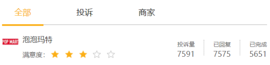 并且从品控、售后、服务等多方面令人诟病不已,仅在黑猫投诉上,有关泡泡玛特的投诉量已经累计到7591条。