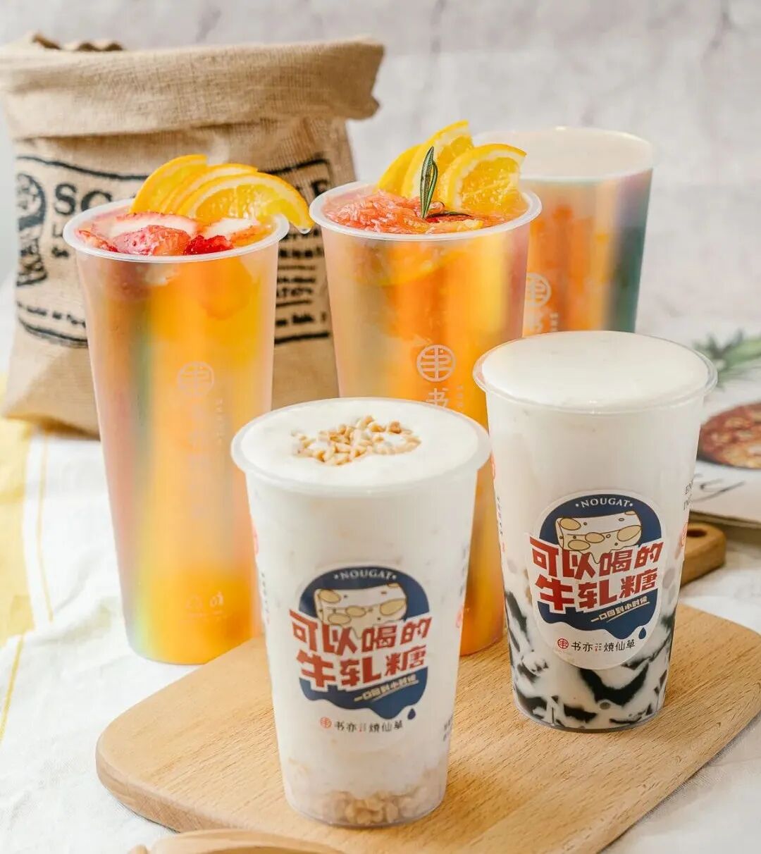 不仅如此,书亦也一直保持产品上的持续创新和精进,例如,牛轧糖奶茶系列,不仅延续了仙草品类优势,还融入了以花生酱和熟花生粒,最有意思的是牛轧糖,作为大多数人的童年回忆,创新口感带来更加浓郁的满足。