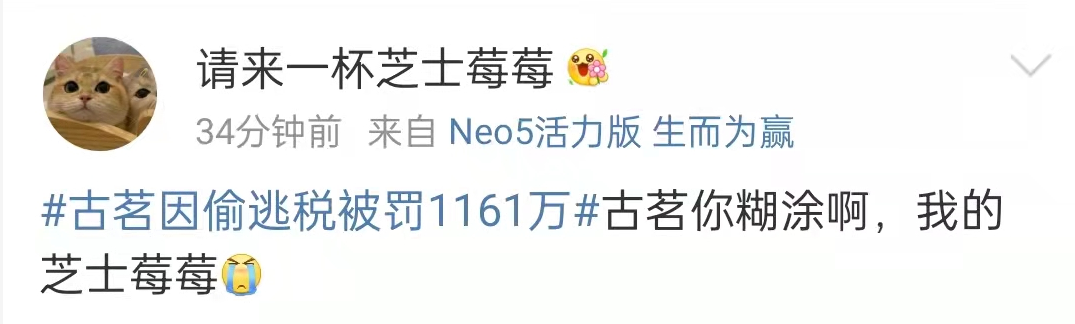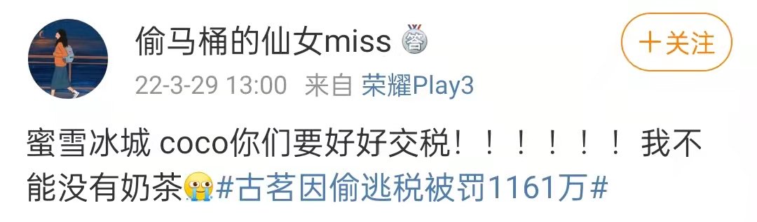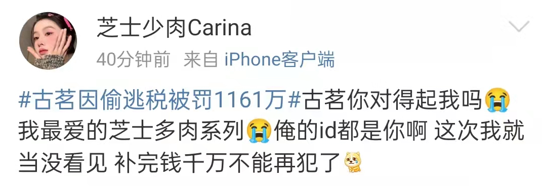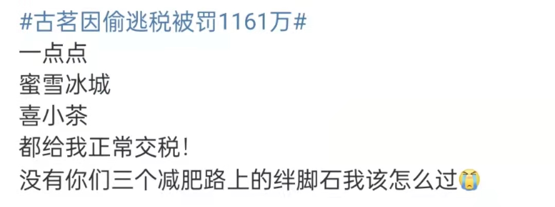 还有人说,一千万才 0.1伦,还不到邓伦的十分之一,太少了,没感觉。拜托,这只是罚款部分,不知道是你飘了还是我提不动刀了见惯了明星偷税漏税动辄一个亿的单位,古茗罚款千万仿佛不在一个量级。但对于普通人来说,一千万可不是一笔小数目,多少人一辈子都挣不到。