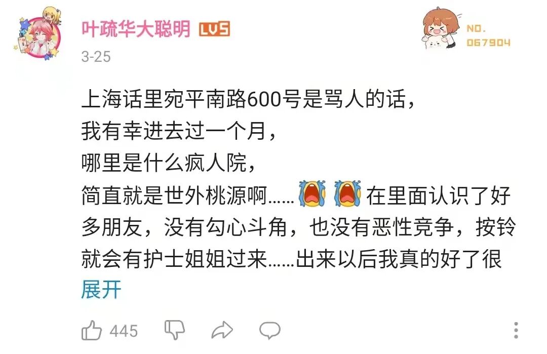 但这位网友的留言着实让我破防了:小时候认为六百号是疯人院,现在六百号成了我人生中的一场唯一的救赎……