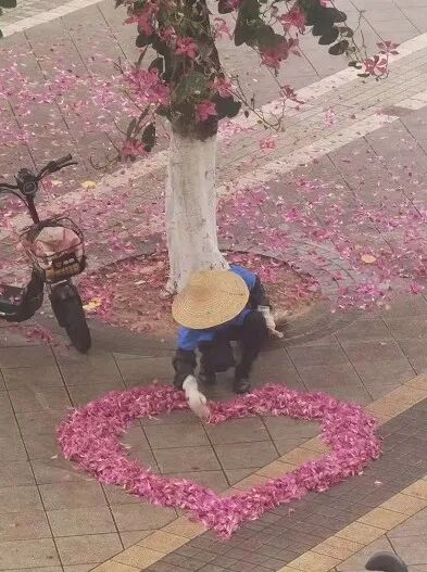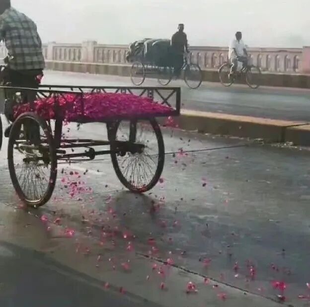 这张图是无意之中看到的,当时第一眼觉得好有感觉。人,踏车,飞落的花瓣和道路