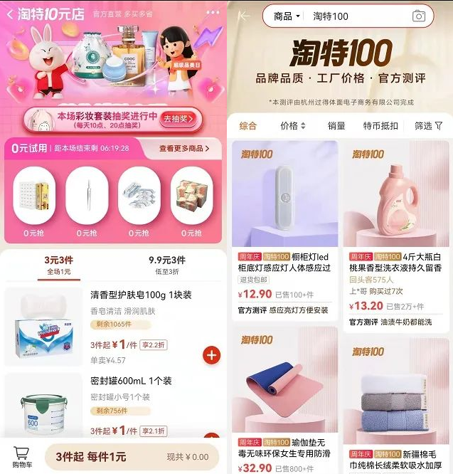 新上线的“淘特10元店”和“淘特100”让其定位已经不仅仅只是一个电商平台,更像是一个孵化爆款的产品公司。