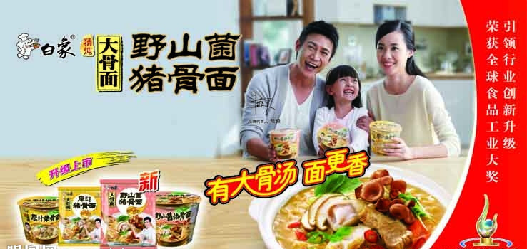 在遇到“师父”郭德纲之前,岳云鹏给工厂看过门,学过电焊刷过盘子,还当过服务员……可谓经历了人生百态。2014年,他与蔡明、华少搭档登上央视春晚舞台,以小品《扰民了您》一夜爆红。自此以后,坚信“勤能补拙”的小岳岳不仅相声越说越好,综艺邀约不断,还参与了几部电影的拍摄。在他身上,我们可以看到“没有人能随随便便成功”的认真努力。这种精神,与白象品牌所要传递的正能量调性还挺搭。作为品牌主打产品,大骨面原汁原味、清淡爽口的特点,与陆毅一家留给大众的印象颇有几分相似。