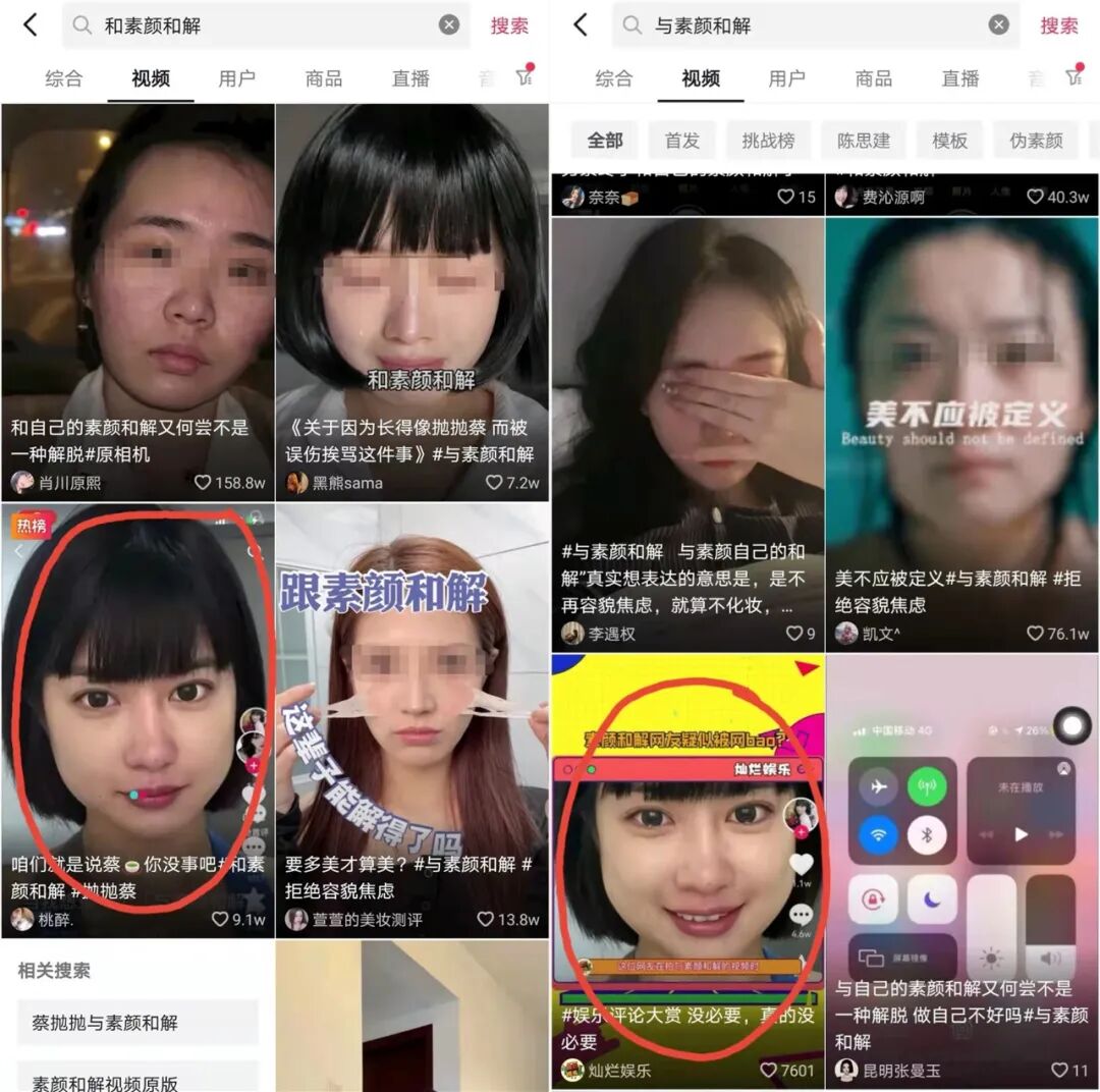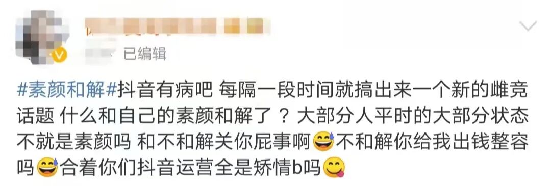 有了先入为主,其他参与挑战的抖音博主也被网友质疑借素颜和解之名,行比美pk之实。