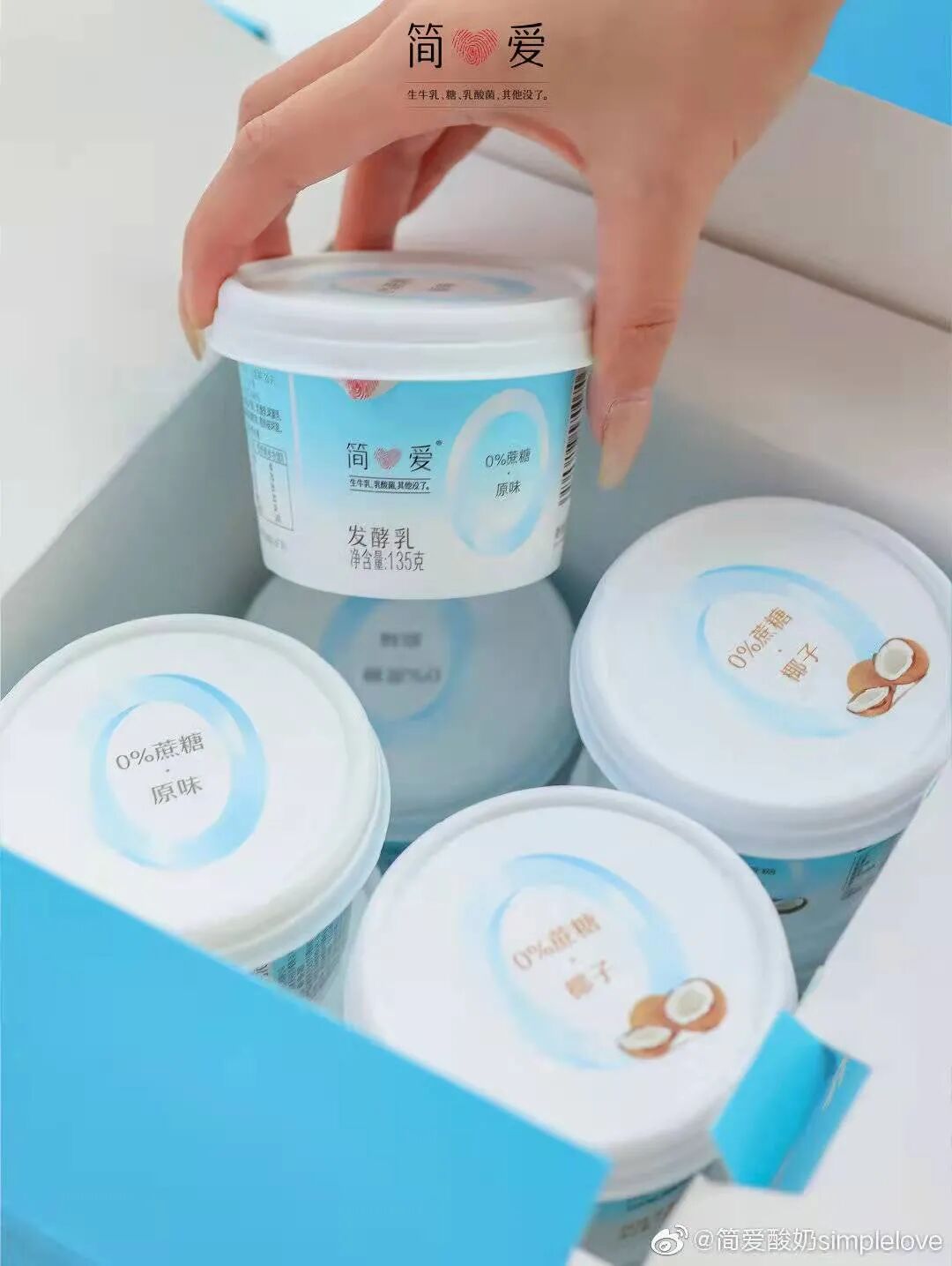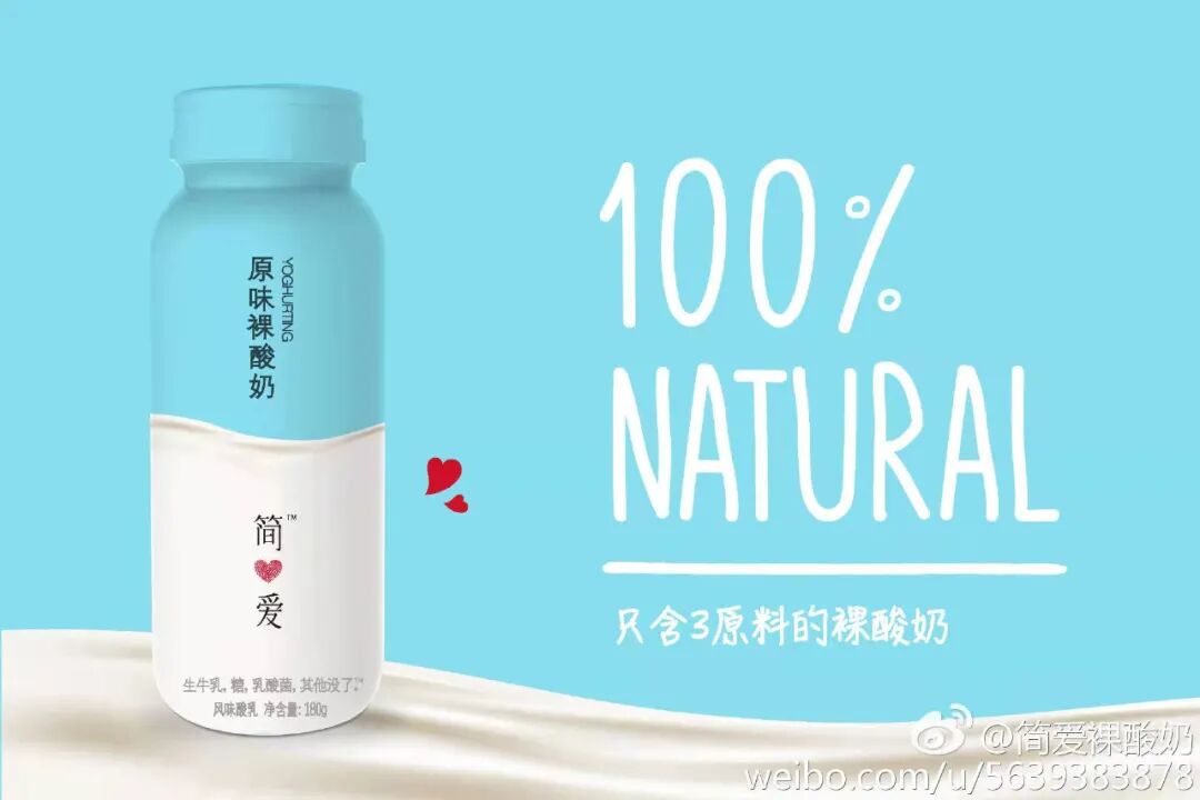 为了打破这一“魔咒”,简爱酸奶应运而生,以基本配方震惊酸奶届:“生牛乳、乳酸菌、糖、其他没了”Slogan,果泥酸奶系列则是“生牛乳、乳酸菌、草莓果酱、其他没了”……率先用低温“无添加”、“精准控糖”、“0%蔗糖”等概念占据酸奶市场。