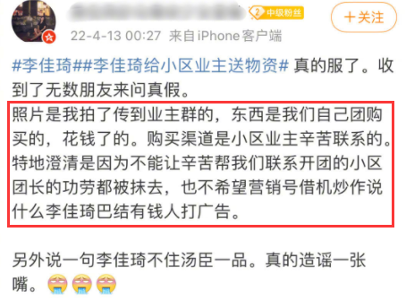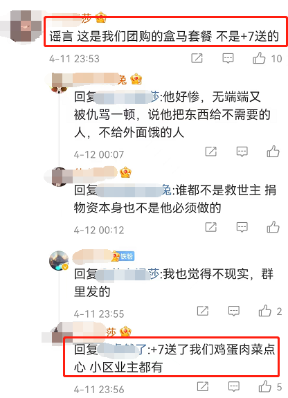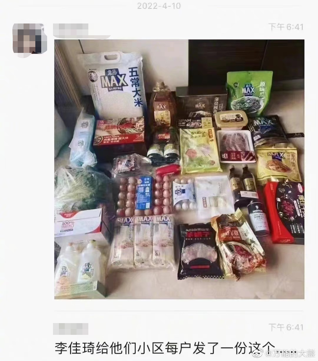 好在剧情反转了,有知情人士站出来,替李佳琦喊冤辟谣。原来网上流出的盒马礼包,是业主自己团购的千元礼包,但李佳琦确实给业主送了鸡蛋肉菜点心等。