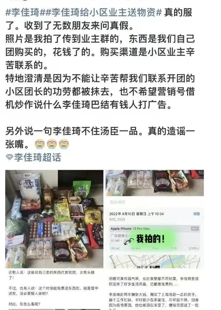 对于李佳琦来说,好心送物资