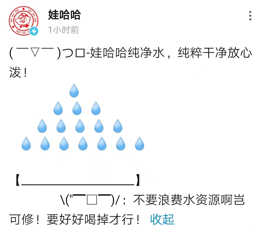 娃哈哈表示:我泼的可是纯净水,能喝的,一点也不浪费。