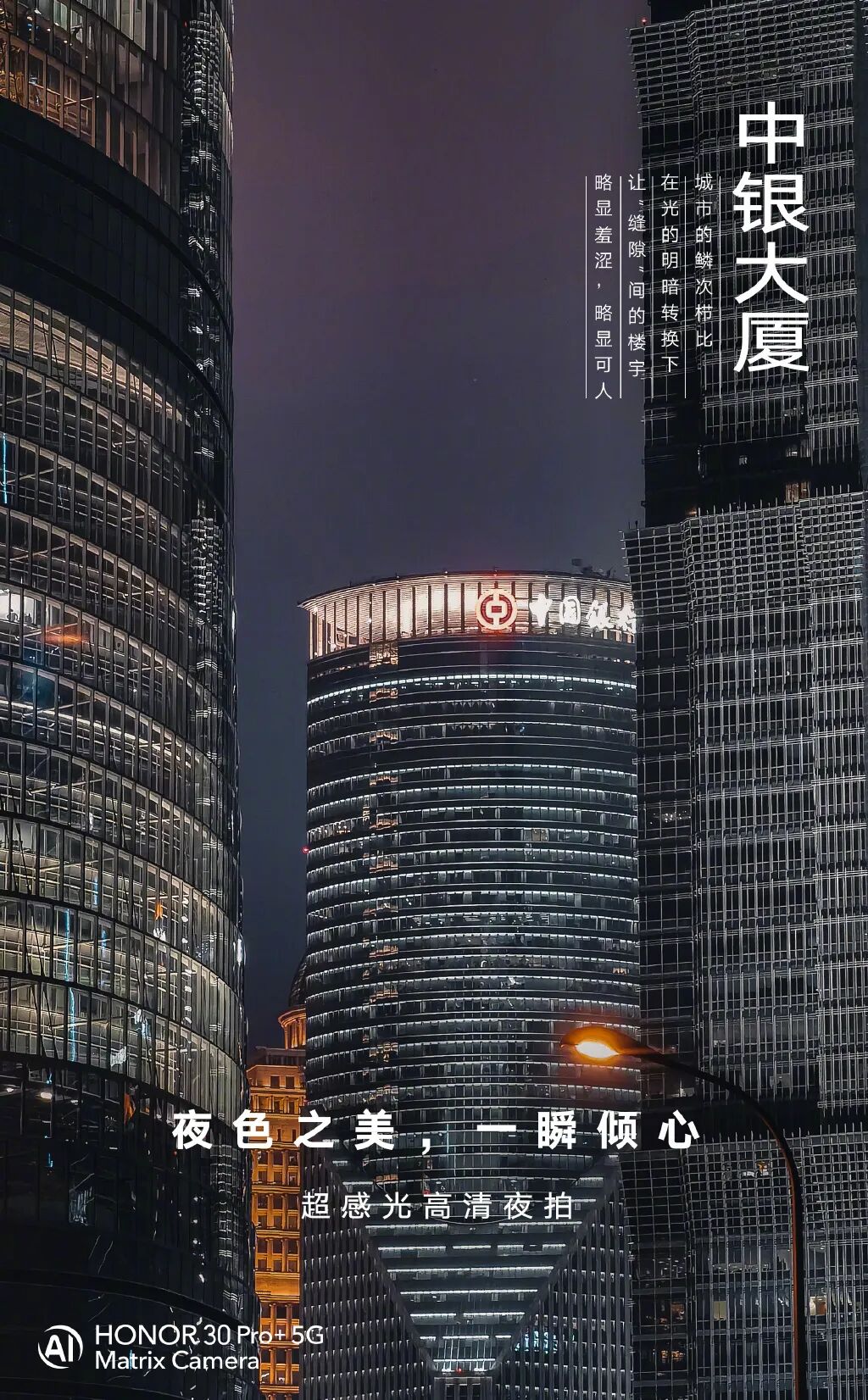 最后这也体现了品牌用内容说话,避免了一套整齐划一的产品说辞书,而是用#荣耀30#系列超感光高清夜拍,将每个城市富有魅力的夜色,呈现到每个人面前。迷离的灯光,变幻的色彩,为这座城市增添了诗情画意……利用反向操作的创意落地,以地标同框照,配合富有故事感的文案,感染每个荣耀手机的用户。可谓真正用产品说话,靠内容致胜。在用夜色情绪撩拨大众内心的过程中,让他们整个身心融入这座城市视觉盛宴中。进而把一张张夜拍体验图片,做成了品牌特色内容,强化了荣耀30系列的超感光夜拍能力,提升受众对于“随时点亮倾心夜色”的感知。 不得不说,这一次用#荣耀30#系列超感光高清夜拍形式,将光与影的美学有效结合:奉上美丽的城市夜景,探索城市夜色的魅力,也点亮每个人心里的那盏灯。