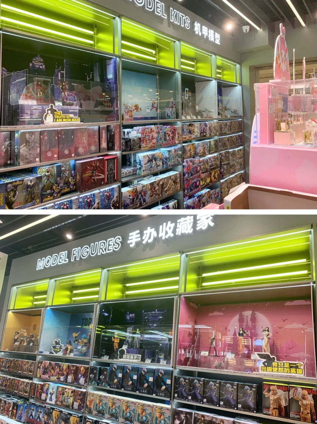 凭借优越的价格力,国产积木能够顺利打开中低端市场,但想要让消费者转化为长期消费者,质量和创新方面仍亟待加强,这也是TOP TOY可以重点攻克的一大方向。目前,TOP TOY自有积木产品较为创新的一点,是借鉴了国潮元素,例如中国航天、中国军事的积木系列,在设计方面明显区别于国外的积木产品。在模型、手办等潮玩方面,TOP TOY则直言学习借鉴的对象是日本万代,因为万代整合了日本人所有精神需求层层裂变,真正实现了集创作、设计、生产、销售、IP孵化、电影,全产业链一体化。万代拥有世界上最多的数量和品种的模型,并几乎包揽了高达,七龙珠等所有知名动漫IP,TOP TOY创始人兼CEO孙元文也坦言:“动漫是我们想推动的一件事情。”可见,在模型,手办领域,无须自行开发IP,获得重要IP的授权,才是重中之重。目前,TOP TOY门店内,模型、手办类产品多为奥特曼、火影隐者、海贼王、七龙珠等知名日漫IP的商品,且几乎均为外采商品。模型、手办类潮玩,售价较高,且消费者最为看重产品的质量。
