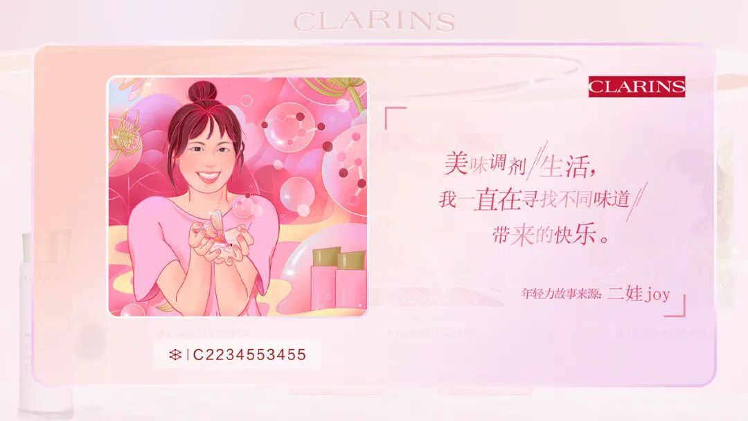 数字藏品作为一种基于区块链技术的文化产品,是特定的作品、艺术品生成的唯一数字凭证,具有数字形态、永久珍藏的特征,深受年轻受众的喜好。娇韵诗为女性量身定制群像数字藏品,将“年轻力”的内在意义具象化呈现。这本质是将时代女性的年轻力魅力,定格于数字藏品之上,以一种特别的形式留存在广大女性受众心中,这也是生生不息的年轻力最好的诠释。02