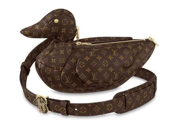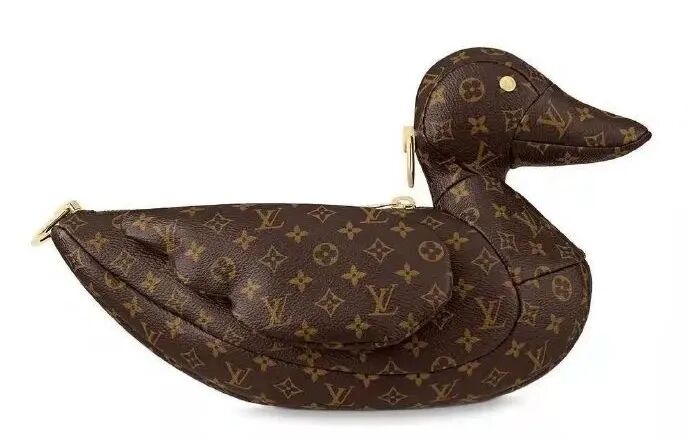 且不说我们不是目标客户,各种奇葩设计产品堪称交智商税。LV曾经跟日本潮牌Nigo,设计一款鸭子造型包包,官方售价4450美元,折算成人民币2.9万。一个不小心,还跟湖北省博物馆“彩漆木雕鸳鸯形盒”撞脸了:如果带着鸭子包去春游,怎么还可以少一顶海边草帽呢?设计师Virgil Abloh第一次到了中国农村,心血来潮设计一款大草帽,100%的稻草天然制作,专卖土豪8200元。建议各位有收入人士,戴上LV乡村草帽,再穿上Supreme大花袄,撸起袖子下田更加配。
