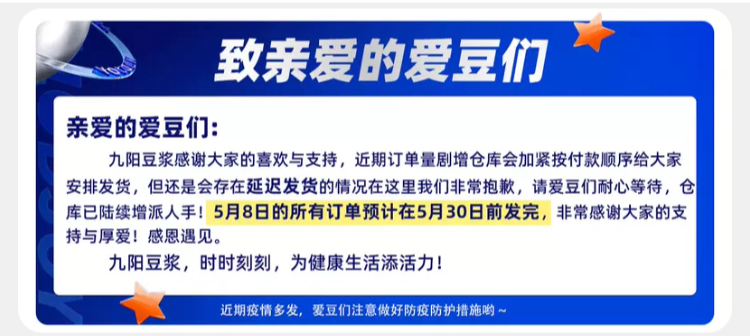 5月8日,九阳豆浆卡点发布了一条微博,官宣最近霸屏网络的刘畊宏为全新代言人,并打出了“喝九阳豆浆,过畊好生活”的广告语。