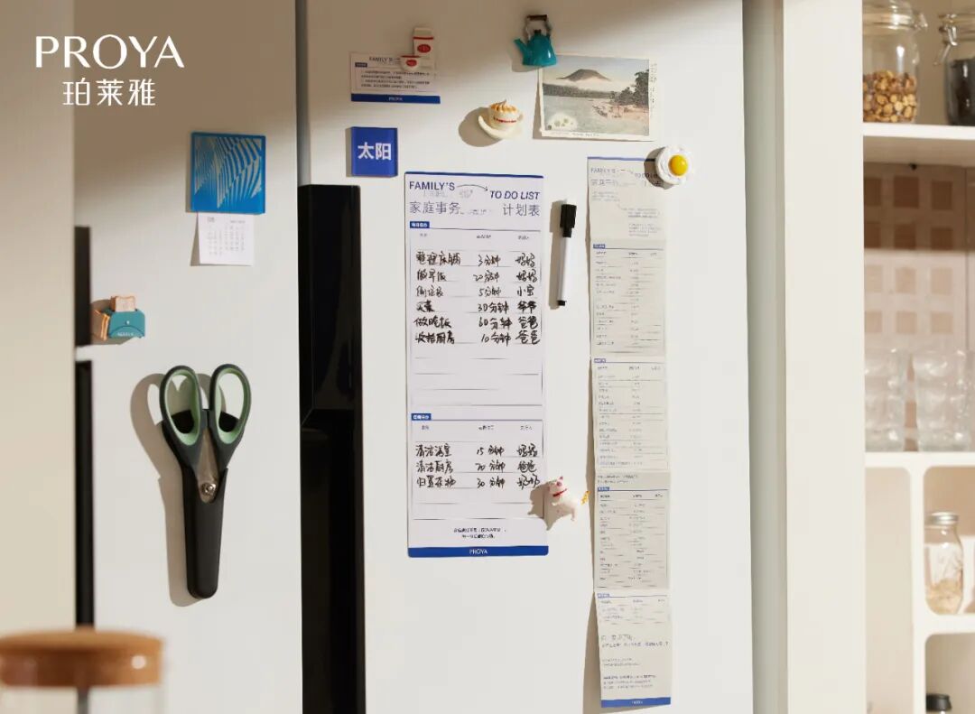 为了更加深刻地体会妈妈的辛苦,珀莱雅还特别策划「家庭事务计划表」冰箱贴套装,将家务事写下来。希望通过这种具象化的方式让所有家庭成员都承担起责任,领悟妈妈的不易。在这份家庭事务计划表里,有着明确的分工,比如妈妈负责整理床铺和做早餐,小宝负责倒垃圾,爷爷负责买菜,爸爸负责做晚饭和收拾厨房......且每个分工还写上了具体计划时间。可以看出,每个家庭角色都有着明确的分工,这将进一步将「家庭责任不是仅妈妈可见,每一份爱都应在场 」这个品牌主张落到实处。珀莱雅没有像以往许多广告一样,将感谢母亲停留在表面,而是推出可执行的计划,让为妈妈分担家务号召付诸于行动,呼吁家人都参与到家务中去。 这样的家庭责任分担计划,让更多人可以切身感受到妈妈这个角色的不易,从而主动承担起帮助妈妈分担家庭的责任。